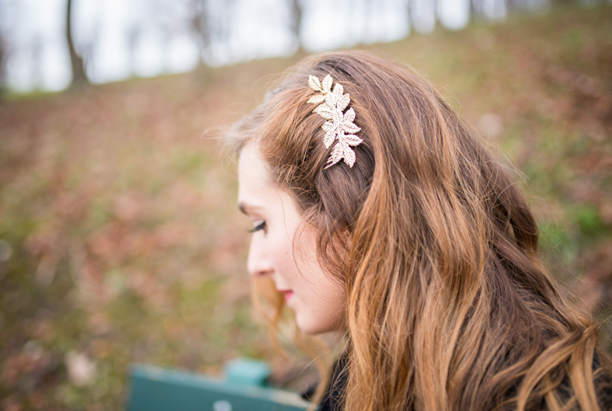 Bracelet jonc Swarovski* – Peigne laurier H&M – Collants New Look – Tatouages éphémères Sioou*