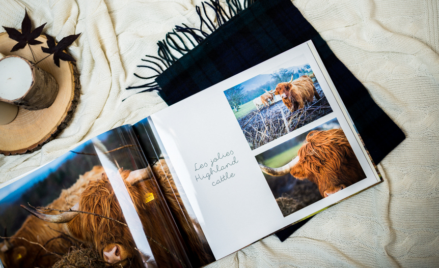 Moi aussi je suis allée en Ecosse (il y a deux ans) avec mes parents (nous avions 4000 photos, j’ai passé au moins 3 semaines à tout trier et mettre en pages… J’ai mes habitudes chez un concurrent qui propose régulièrement des promotions, des produits et des tailles très variés, de très belle qualité aussi. J’ai bien galéré pour caser mes photos dans 100 pages, mais je suis très fière du résultat !!