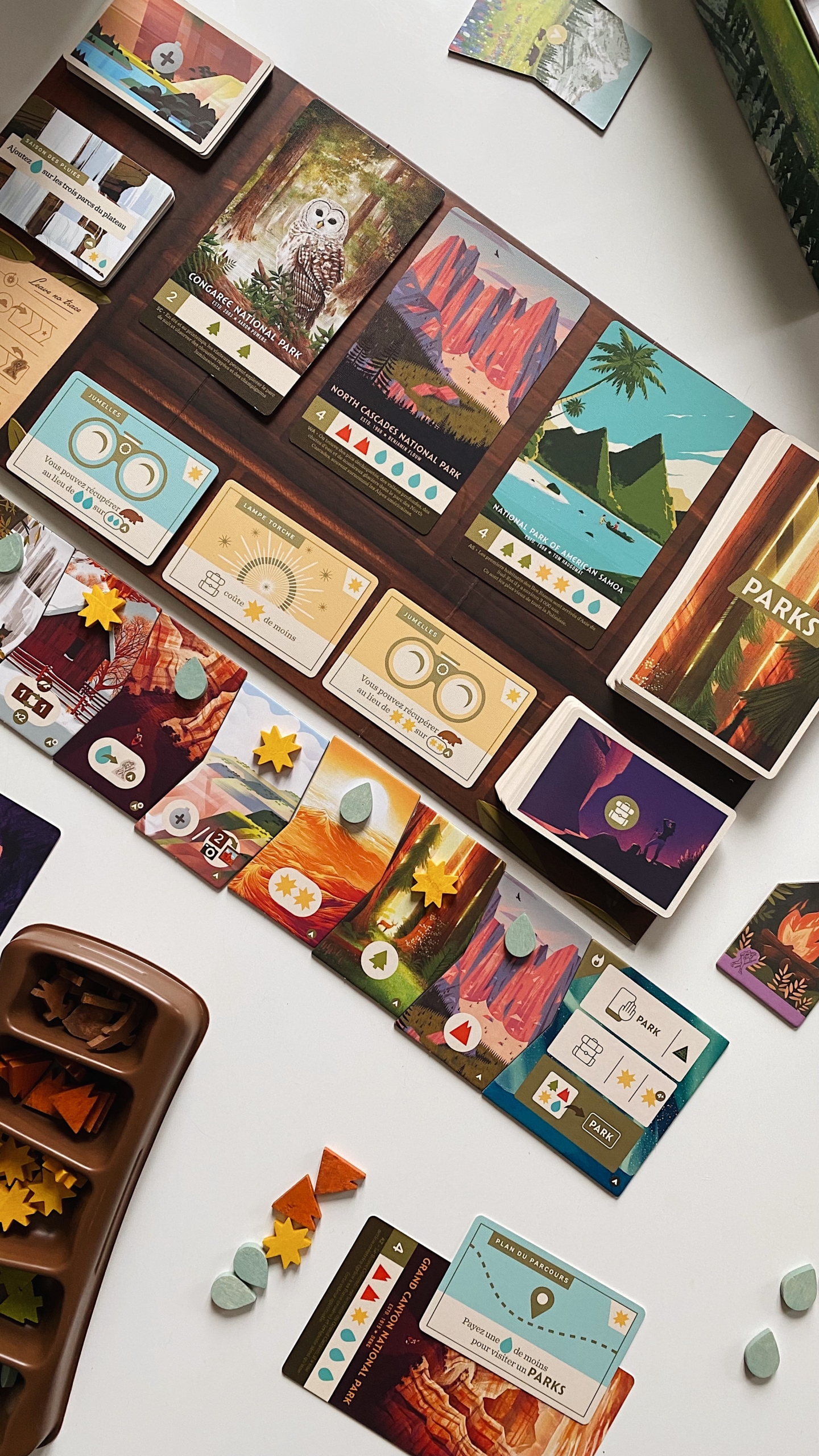 2. Parks : un jeu où l’on part en randonnée à travers les parcs nationaux américains – les illustrations sont sublimes. Chaque joueur·se avance sur un sentier, récolte des ressources, prend des photos et tente de visiter le plus de parcs pour marquer des points. Il est un peu difficile à prendre en main mais une fois que l’on a compris les règles, c’est le jeu de plateau parfait pour un dimanche d’hiver pluvieux. Stratégique juste ce qu’il faut, comprenez que je perds tout le temps mais ça va, je ne suis pas mauvaise joueuse.