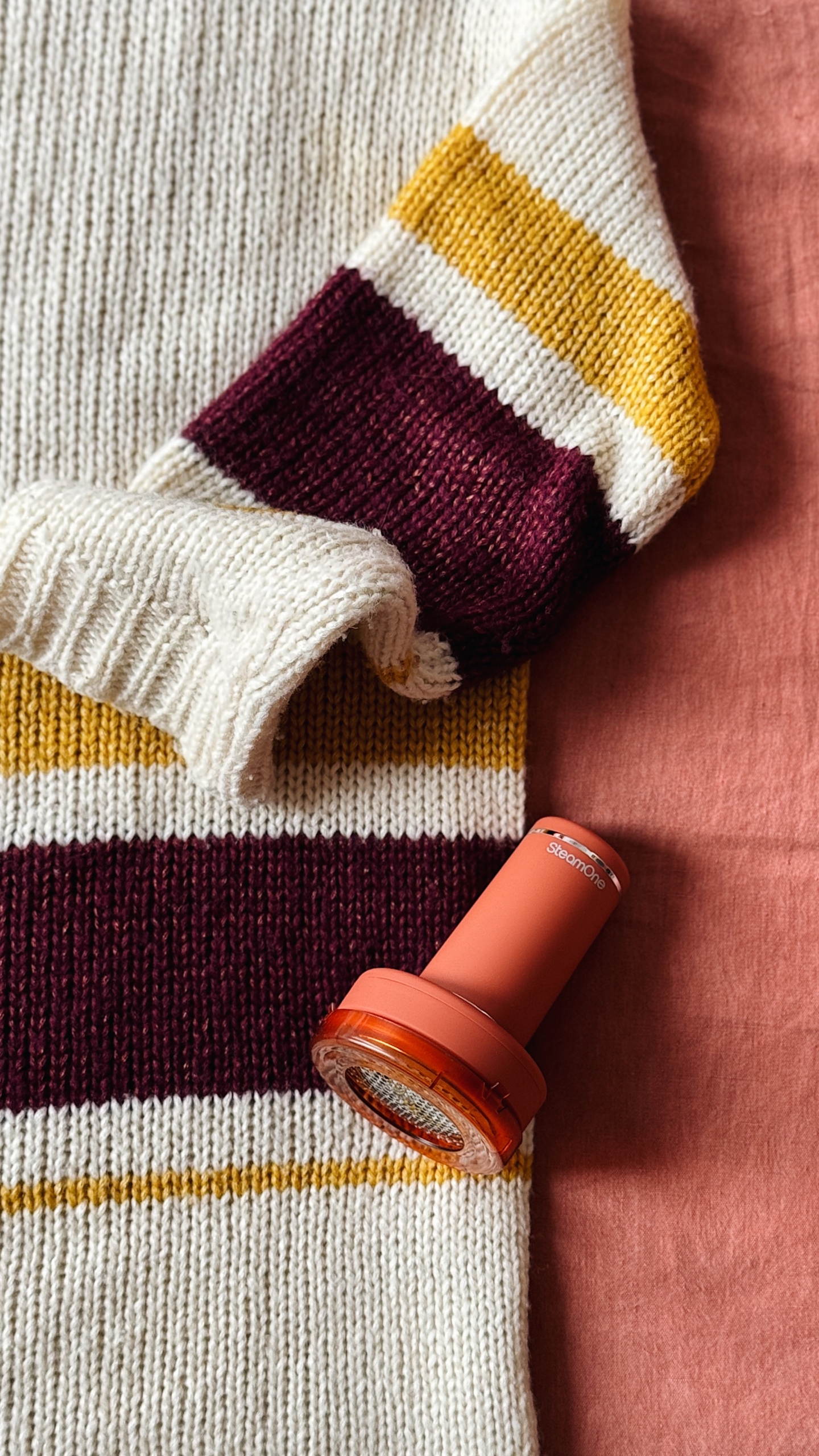 1. Un kit steamer et rasoir anti-bouloches SteamOne* : pour moi qui suis maniaque mais qui ai une gigantesque flemme de repasser, le steamer c’est le meilleur des deux mondes. Je l’utilise principalement sur les chemises et les tissus délicats comme la soie. C’est aussi commode pour défroisser les manteaux après avoir été stockés dans des sacs sous vide et désodoriser les vêtements ; j’aime bien également m’en servir pour les nappes. Le modèle Karl XL de SteamOne est très léger – il a un réservoir de 400 ml avec une autonomie d’environ 30 minutes. Souvent, il est vendu avec un rasoir anti-bouloches qui, comme son nom l’indique, rase les bouloches. Il est plus cool que celui que j’avais avant car il se charge sur secteur et sa prise en main est plus ergonomique.