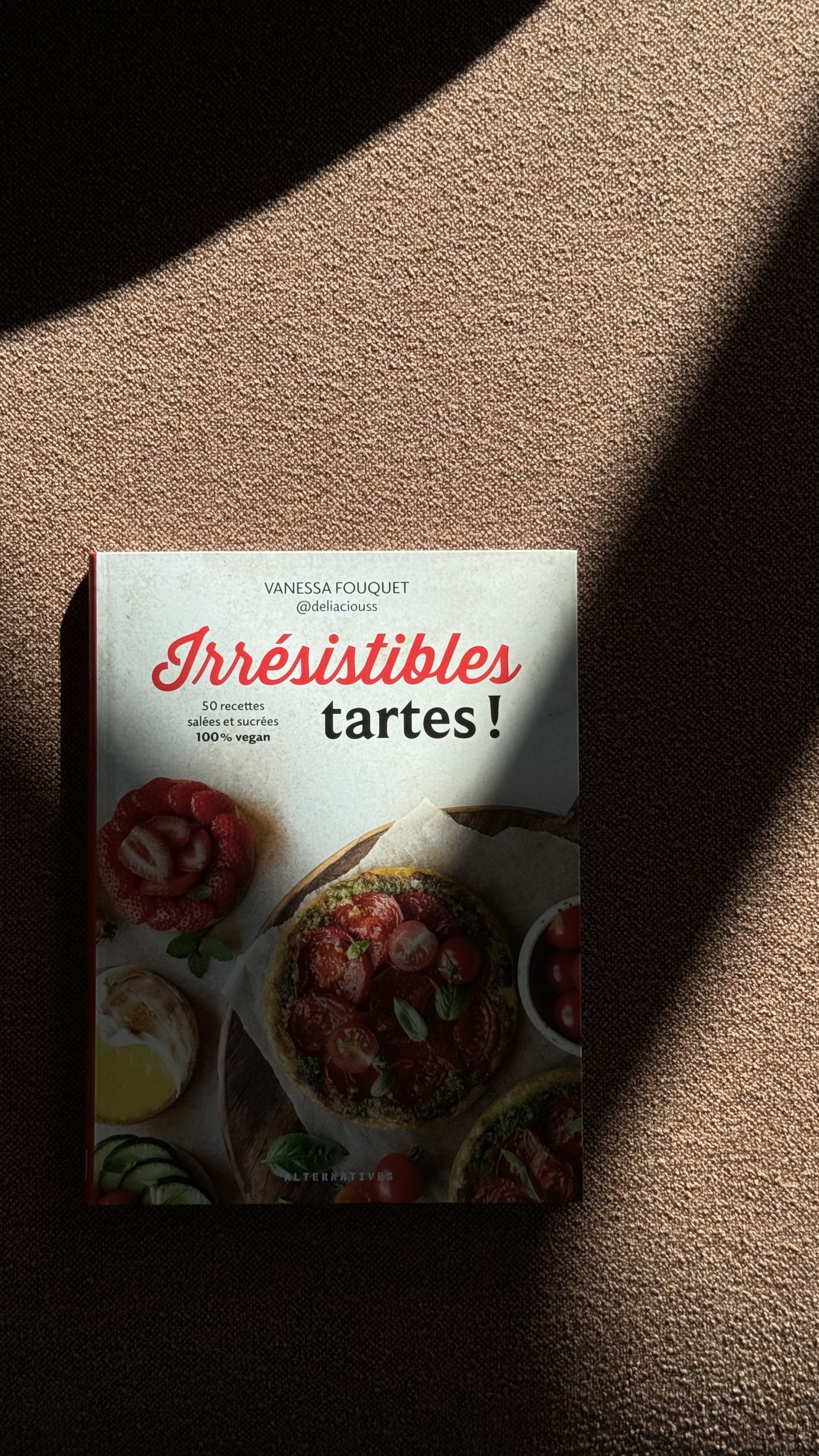 1. Irrésistibles tartes* : bien que je ne sois pas celle qui cuisine le plus à la maison et qui ait des compétences peu développées en la matière, je n’ai jamais raté une seule recette de Vanessa. Irrésistibles tartes est son premier livre et on y trouve 50 recettes de tartes salées et sucrées vegan de saison, effectivement irrésistibles et accessibles aux feignantes comme moi – avec des ingrédients simples et des instructions claires. J’adore sa tarte rustique poires, amandes & chocolat et celle façon fondant au chocolat, totalement illégale.