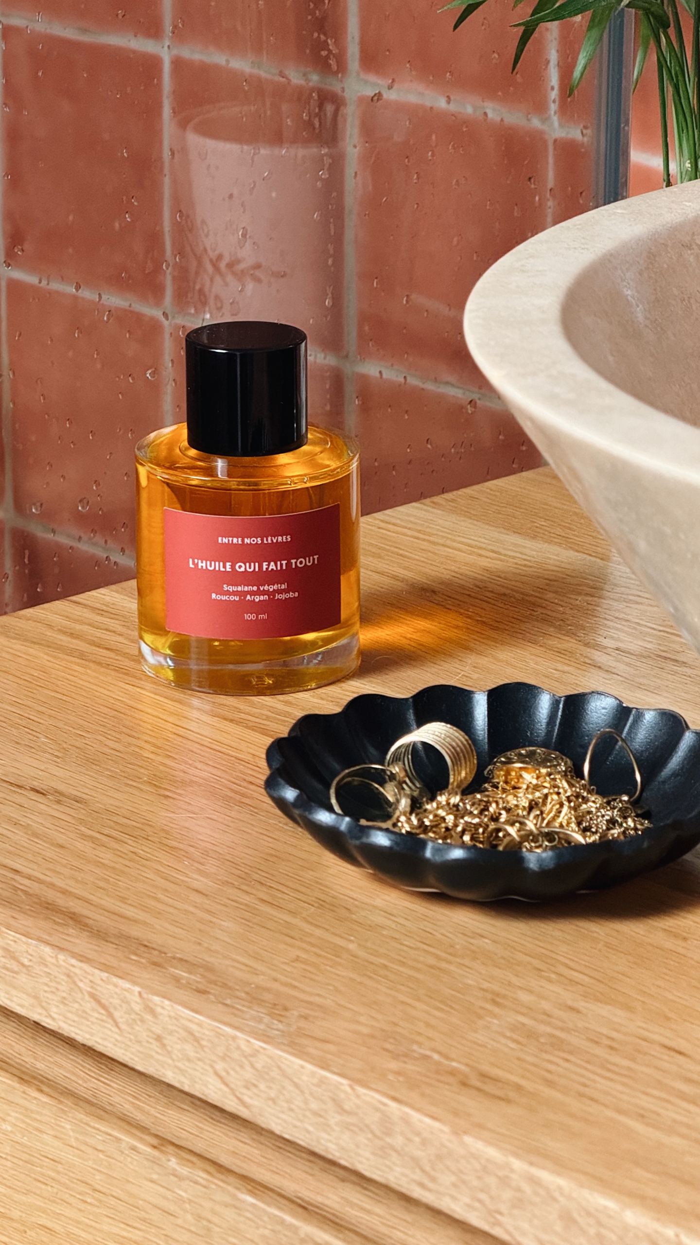 10. L’huile qui fait tout Entre nos lèvres* : un produit multi-usages pour tous les types de peaux qui nourrit le visage, le corps et les cheveux. J’en ai parlé à maintes reprises ; c’est un must-have imaginé par Céline & Margaux qui plaira à celles et ceux qui aiment les routines de soins minimalistes, rapides et efficaces. En gros c’est comme l’Huile prodigieuse de Nuxe mais en mieux. -10% sur les deux formats avec le code LAETITIA10.