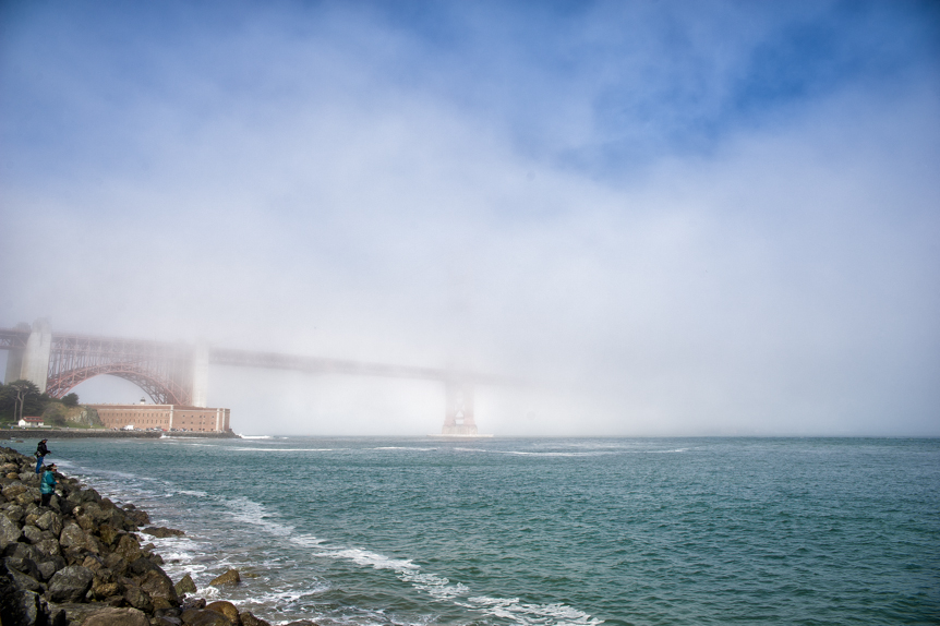 Le lendemain, le soleil rayonnait et nous sommes retournés à Presidio Park, en bus cette fois, pour la jolie vue du Golden Gate Bridge depuis Baker Beach. Arrivés au terminus, nous nous sommes frayés un chemin jusqu’à la plage, le bruit de l’océan était assez impressionnant et ce qui commençait à se dessiner sous nos yeux à couper le souffle. Je crois que c’est à ce moment-là que j’ai réalisé que j’y étais enfin pour de vrai.